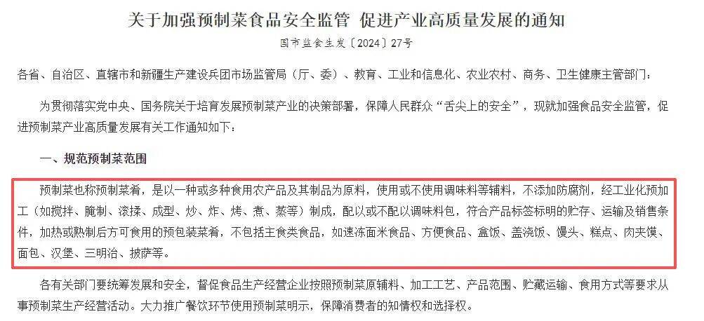 通知明白,预制菜是以食用农产物及其成品为原料,颠末工业化预加工制成,需加热或熟制后方可食用的预包拆菜肴。同时指出,以下几种环境不纳入预制菜范畴:连锁餐饮地方厨房向自有门店配送的净菜、半成品等,从食类食物,如速冻面米食物、便利食物、盒饭、盖浇饭、馒头、糕点、肉夹馍、面包、汉堡、三明治、比萨等。食物财产阐发师朱丹蓬认为,通知中关于预制菜有两个硬性要求,一是添加防腐剂,确保食物的天然取健康;二是预制菜必需全程冷链,以维持食物的新颖度和平安性。从商家运营角度看,地方厨房模式能够做到尺度化、集约化、流程化,有帮于“降本增效”。但消费者却对预制菜“很”。